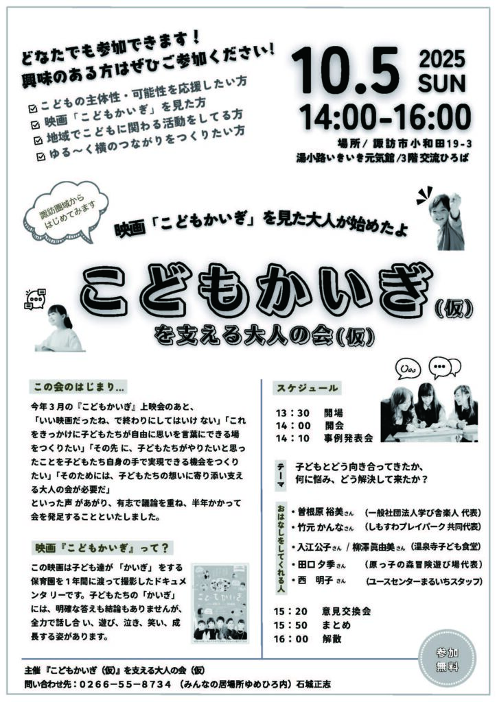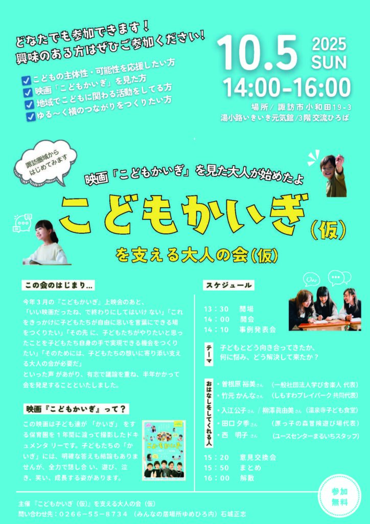 2025年9月29日 / 最終更新日時 : 2025年9月29日 ゆめひろ おしらせ 「こどもかいぎ(仮)」を支える大人の会(仮)発足会 10月5日(日)14時より、上記の催し物が開催されます。お父さん、お母さん、子どもに関わる全ての大人に参加してほしいと思っています。子どもの参加も大歓迎です。詳しくはちらしでご確認ください。 Follow me! FacebooktwitterHatenaPocketCopy