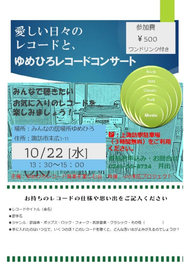 22日(水)、ゆめひろレコードコンサートを開催します。詳しくはちらしでご確認ください。